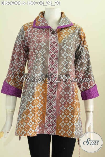 Blus Batik Istimewa Buatan Solo, Pakaian Batik Masa KiniModel Kerah Plesir Motif Terkini Proses Cap Harga 180K [BLS6690C-S]