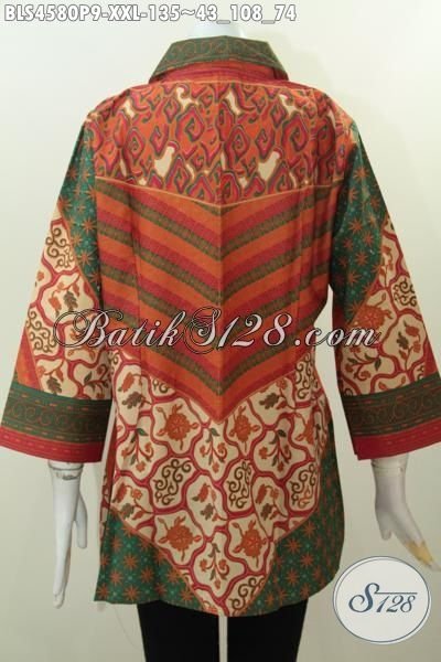 Blus Batik Istimewa Size 3L Untuk Cewek Berbadan Gemuk, Baju Batik Klasik Motif Sinaran Proses Printing Asli Dari Solo [BLS4580P-XXL]