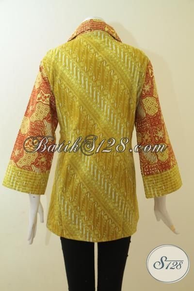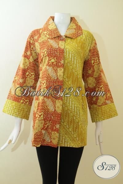 Blus Batik Jumbo Halus Proses Cap Tulis, Pakaian Batik Model Formal Untuk Ke Kantor, Batik Jawa Trend Dual Motif Dengan Warna Trend Wanita Gemuk Tampil Modis [BLS3014CT-XXL]