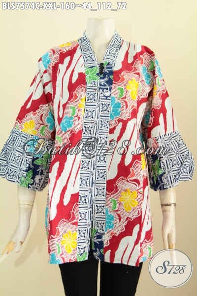 Blus Batik Kenzi Big Size, Busana Batik Kancing Banyak Untuk Wanita Gemuk, Hadir Dengan Bahan Halus Motif Unik Proses Cap, Penampilan Lebih Stylish [BLS7574C-XXL]
