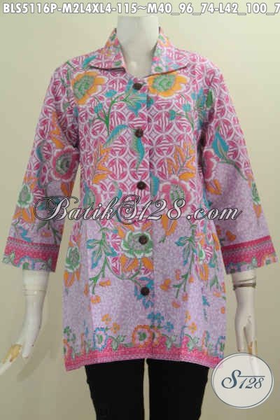 Blus Batik Kerah Kotak Istimewa Buat Wanita Muda Dan Dewasa Dengan Kombinasi Warna Trendy Yang Cewek Banget [BLS5116P-M , XL]