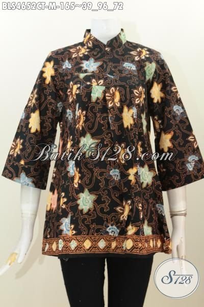 Blus Batik Kerah Shanghai Motif Bunga Berbahan Halus Kwalita Istimewa Proses Cap Tulis, Baju Batik Modern Berkelas Untuk Wanita Muda Karir Aktif Tampil Mempesona [BLS4652CT-M]