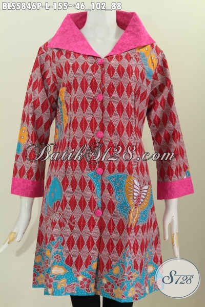 Blus Batik Keren Buat Wanita Muda Dan Dewasa, Baju Batik Masa Kini Model Kerah Lebar Untuk Penampilan Lebih Istimewa [BLS5846P-L]