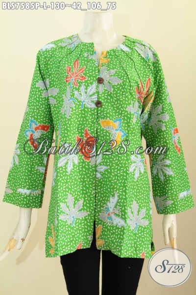 Blus Batik Keren Warna Hijau, Baju Batik Modis Tanpa Krah Motif Trendy Proses Printing Hanya 100 Ribuan Bisa Tampil Mempesona [BLS7585P-L]