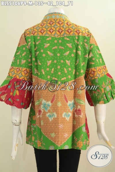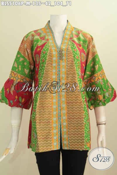 Blus Batik Klasik Dengan Kombinasi Warna Berkelas, Pakaian Kerja Terbaru Wanita Karir Model Kerah Kartini Berpadu Lengan Balon Penampilan Lebih Modis Dan Istimewa [BLS5106P-M]