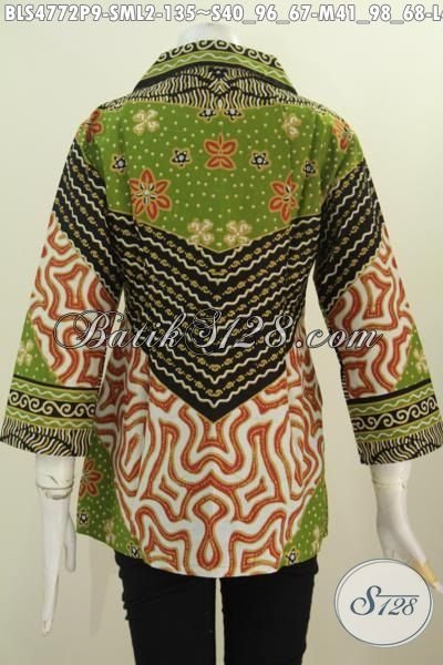 Blus Batik Klasik Hijau Motif Sinaran, Pakaian Batik Proses Printing Buatan Solo Desain Elegan Kerah Kotak Untuk Penampilan Lebih Modis Dan Gaya [BLS4772P-S , M , L]