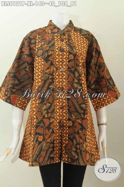 Blus Batik Klasik Lengan 3/4, Pakaian Batik Elegan Bahan Adem Proses Printing Kerah Model Shanghai, Pas Buat Kerja [BLS6121P-XL]
