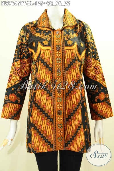 Blus Batik Klasik Wanita Dewasa, Baju Batik Atasan Wanita Modis Dan Berkelas Dengan Model Kerah, Bikin Penampilan Terlihat Mewah Dan Berkelas [BLS7625BT-XL]