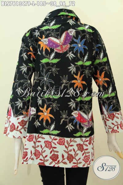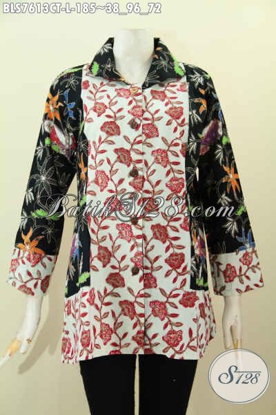 Blus Batik Kombinasi, Baju Batik Model Krah Buatan Solo Yang Modis Buat Kerja Dan Jalan-Jalan Proses Cap Tulis [BLS7613CT-L]