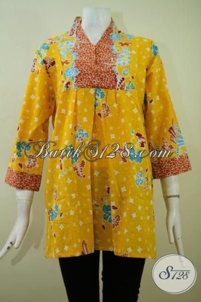 Blus Batik Kuning Motif Lucu Dan Trendy Cocok Untuk Busana Pesta Maupun Kerja, Baju Batik Solo Proses Printing Harga Murah Meriah Kwalitas Bagus [BLS2382P-M]