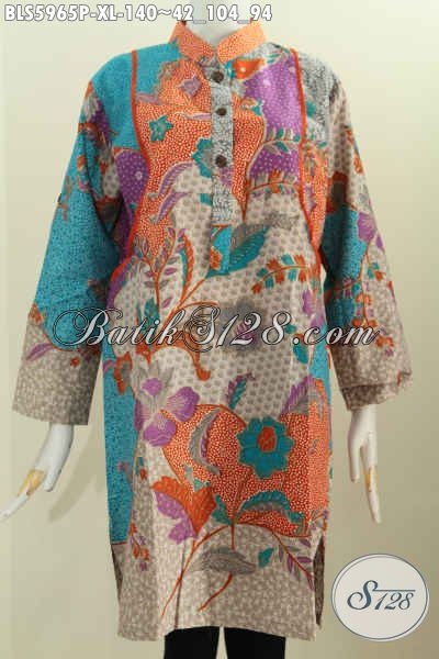 Blus Batik Lengan Panjang, Baju Batik Istimewa Dari Solo, Pakaian Batik Lengan Panjang Kerah Shanghai Untuk Wanita Terlihat Cantik Maksimal [BLS5965P-XL]