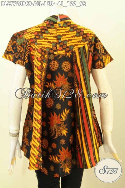 Blus Batik Lengan Pendek Klasik Motif Sinaran, Baju Batik Printing Elegan Desain Kekinian Bikin Penampilan Lebih Gaya [BLS7720PC-All Size]
