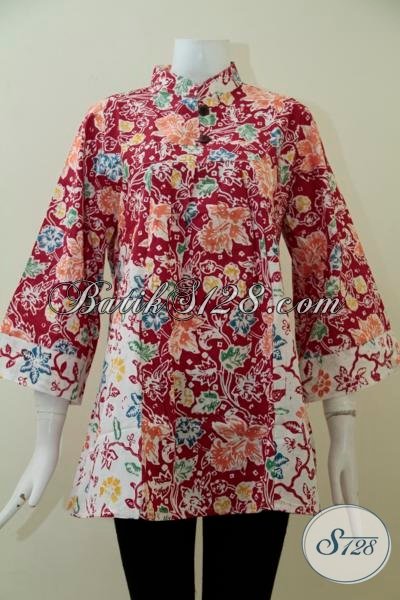 Blus Batik Merah Busana Formal Untuk Kerja Dan Rapat, Batik Klasik Modern Proses Cap Harga Terjangkau [BLS1951C-XL]