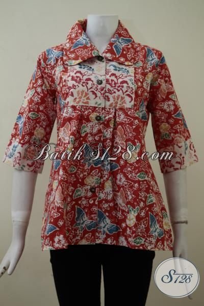 Blus Batik Merah Motif Modern Dengan Bahan Katun Halus Berkwalitas Tinggi Sehingga Nyaman Di Pakai, Baju Batik Solo Sempurnakan Penampilan Cewek Masa Kini [BLS2109C-S]