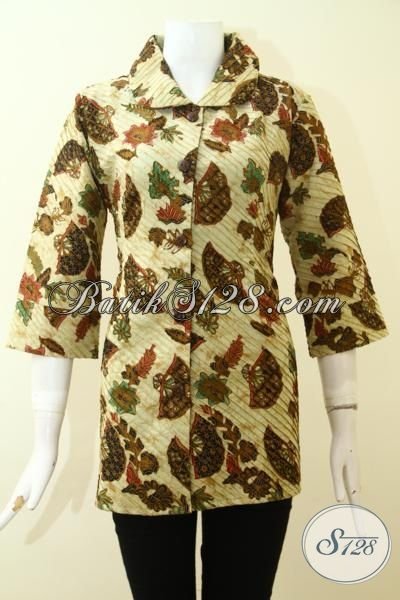 Blus Batik Mewah Desain Terbaru Proses Print Dilengkapi Daleman Furing Tricot, Baju Batik Wanita Model Opnaisel Keren [BLS2581POF-M]