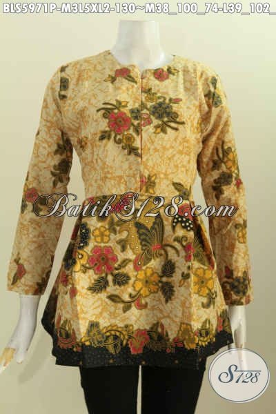 Blus Batik Mewah Harga Murah, Baju Batik Lengan Panjang Resleting Depan Karet Belakang Bahan Adem Motif Trendy Proses Printing Untuk Wanita Tampil Anggun Istimewa [BLS5971P-M , L , XL]