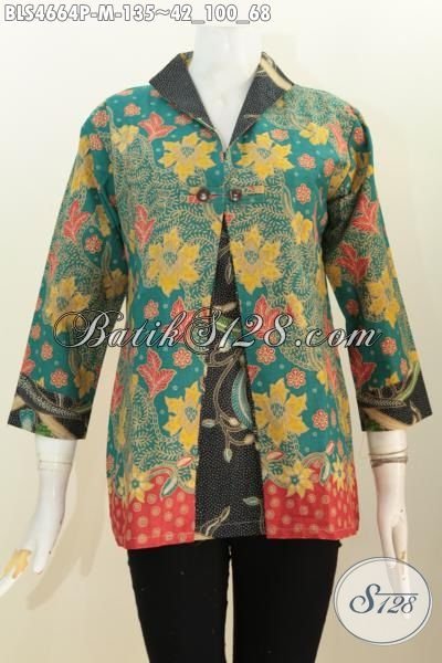 Blus Batik Mewah Model Kombinasi Blazer, Busana Batik Formal Wanita Karir Bahan Adem Motif Elegan Proses Printing Harga Terjangkau [BLS4664P-M]
