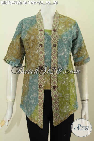 Blus Batik Model Seksi, Pakaian Batik Trendy Wanita Modern, Baju Batik Kartini Motif Mewah Proses Gradasi Asli Dari Solo [BLS7074CG-M]