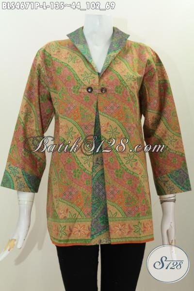 Blus Batik Model Terbaru Kombinasi Blazer, Pakaian Batik Elegan Trend Masa Kini, Baju Kerja Batik Wanita Karir Motif Mewah Proses Printing Hanya 135K [BLS4671P-L]