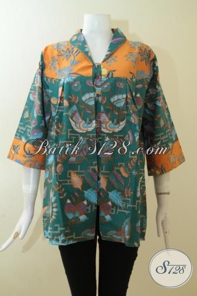 Blus Batik Modern, Batik Wanita Paling Keren Dengan Model Terbaru, Pakaian Batik Printing Warna Hijau Kombinasi Kuning Halus Harga Murmer [BLS2997P-L]