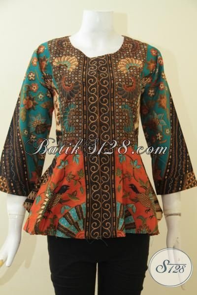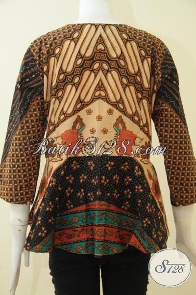 Blus Batik Modern Desain Tanpa Kerah, Pakaian Batik Elegan Motif Klasik Proses Printing Kwalitas Halus Harga Terjangkau [BLS3581P-M]