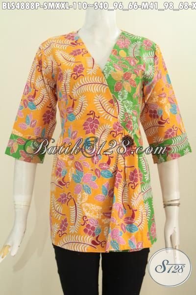 Blus Batik Modern Model Kimono, Baju Batik Trendy Warna Kuning Kombinasi Hijau Motif Bunga Proses Printing Hanya 110K [BLS4888P-S , M , XXL]
