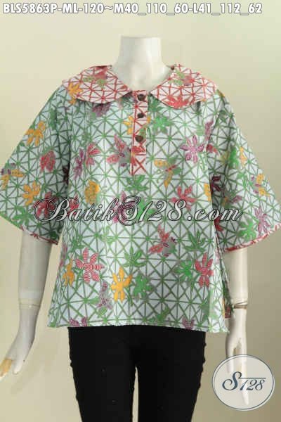 Blus Batik Modern Motif Trendy, Pakaian Batik Printing Halus Khas Jawa Tengah Yang Bikin Wanita Terlihat Keren [BLS5863P-M , L]
