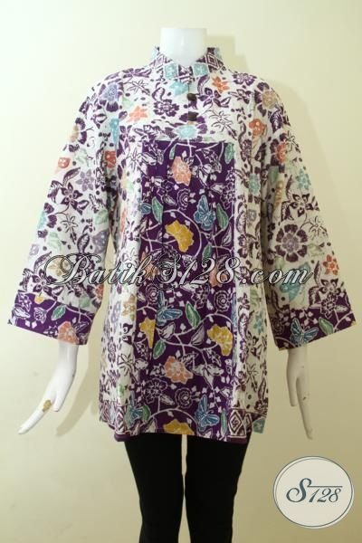 Blus Batik Modern Size Jumbo Model Bagus Kain Halus, Baju Batik Untuk Wanita Gemuk Tampil Keren Dan Beda [BLS2547C-XXL]
