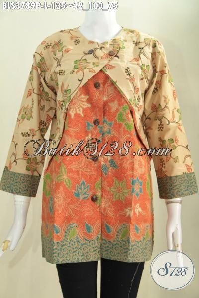 Blus Batik Motif Bunga Keren Desain Mewah, Baju Batik Kombinasi Blus Dan Batik Proses Printing Membuat Wanita Terlihat Gaya Dan Keren [BLS3789P-L]