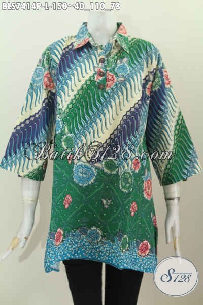 Blus Batik Motif Bunga, Pakaian Batik Elegan Dan Berkelas Dengan Desain Kerah Lancip Pakai Kancing Depan, Tampil Anggun Dan Cantik [BLS7414P-L]