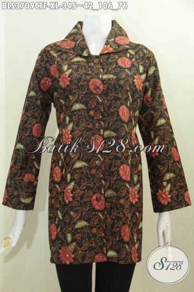 Blus Batik Motif Bunga Proses Cap Tulis, Busana Batik Kerja Wanita Karir Model Terkini Daleman Pake Furing Lebih Mewah Dan nyaman Di Pakai [BLS3709CTF-XL]
