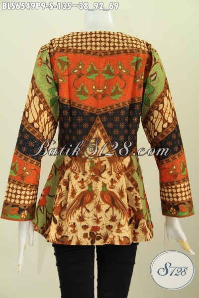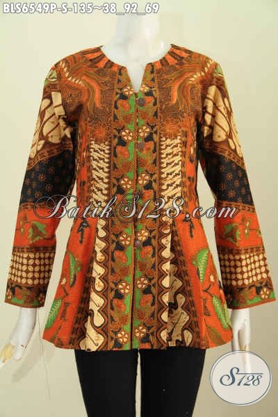 Blus Batik Motif Klasik, Baju Batik Halus Tanpa Kerah Model Lengan Panjang Proses Pirnting Hanya 135K [BLS6549P-S]