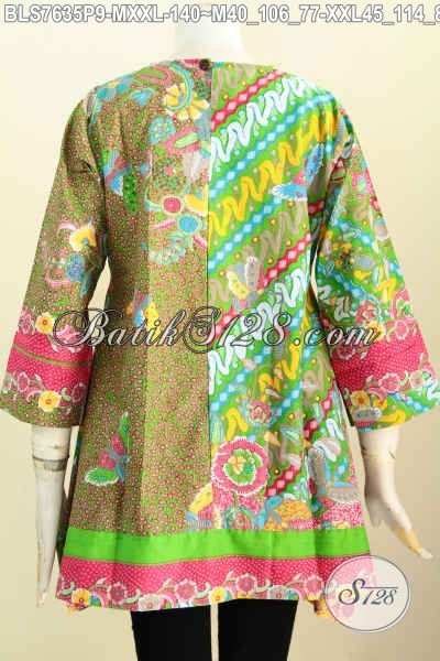 Blus Batik Motif Kombinasi, Pakaian Batik Jawa Etnik, Busana Batik Model Kotak Proses Printing Hanya 100 Ribuan Bisa Tampil Gaya [BLS7635P-M , XXL]