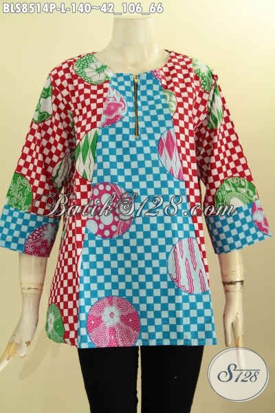 Blus Batik Motif Kotak Dengan Sentuhan Artistik Nan Keren, Baju Batik Kerja Dan Santai Dengan Lengan 7/8 Serta Kancing Depan, Penampilan Lebih Modis Dan Gaya [BLS8514P-L]