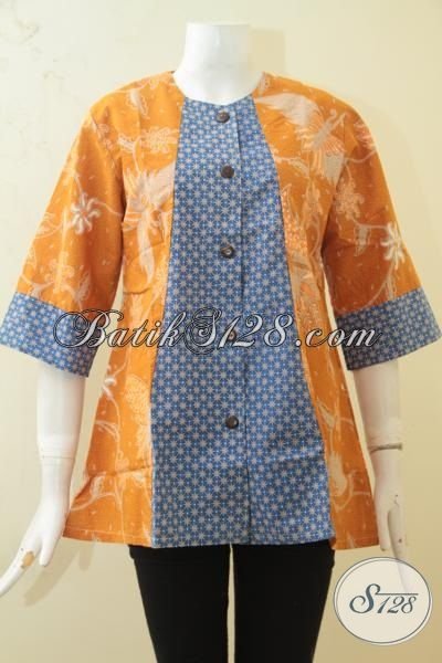 Blus Batik Paling Keren Buatan Solo, Busana Batik Modern Exclusive Wanita Karir, Baju Batik Kombinasi Tulis Warna Keren Penampilan Makin Paten [BLS3370BT-L]