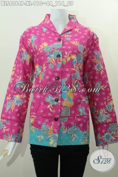 Blus Batik Pink Motif Bunga-Bunga Proses Printing, Busana Batik Trendy Desain Terbaru Yang Mengubah Penampilan Semakin Anggun Dan Cantik [BLS4064P-XL]