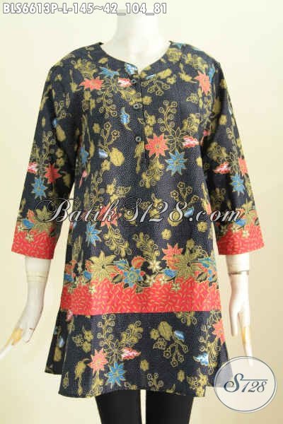 Blus Batik Printing Kerah Paspol Motif Keren Kwalitas Bagus Hanya 145K, Modis Buat Ke Kantor [BLS6613P-L]