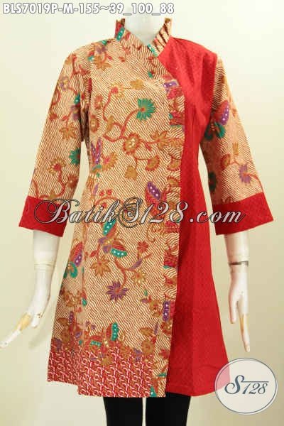 Blus Batik Printing Modis Dan Kekinian, Baju Batik Atasan Wanita Kantor, Berbahan Halus Kombinasi Embos Harga 155K, Asli Buatan Solo [BLS7019P-M]