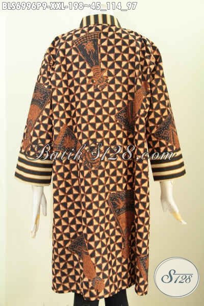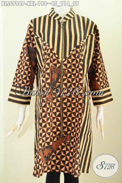Blus Batik Resleting Depan Paduan Motif Slarak, Baju Batik Printing Solo Premium Yang Membuat Wanita Gemuk Terlihat Berkelas Dan Anggun [BLS6996P-XXL]