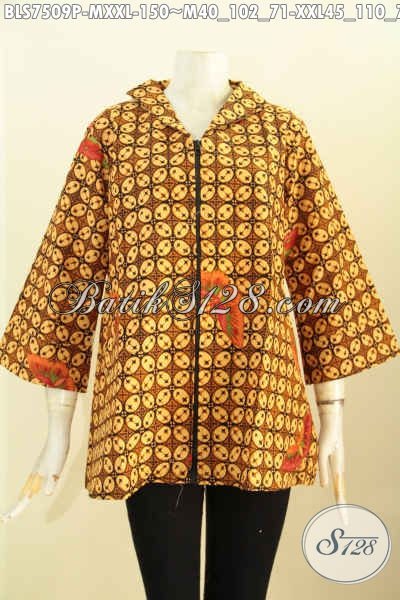 Blus Batik Resti Istimewa, Busana Batik Klasik Proses Printing Desain Kerah Langsung Resleting Depan, Tampil Elegan [BLS7509P-XXL]