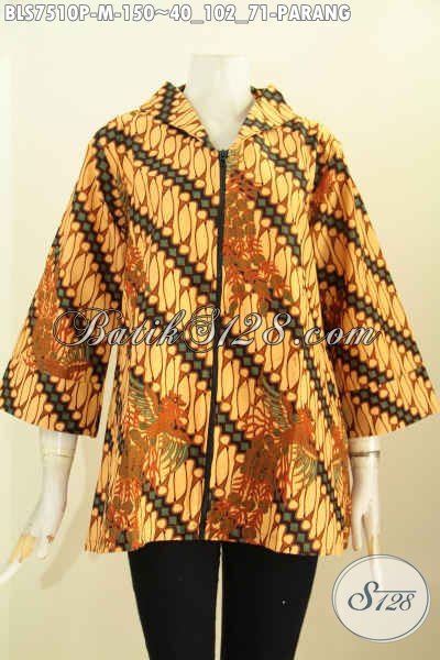 Blus Batik Resti Motif Parang Klasik, Baju Batik Printing Elegan Kerah Langsung Bahan Halus Dengan Resleting Harga 150K [BLS7510P-M]