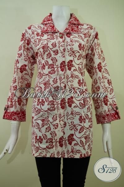 Blus Batik Seragam Kantor Perempuan Muda Untuk Tampil Lebih Rapi Dan Bergaya, Baju Batik Solo Klasik Modern Proses Cap Harga Terjangkau [BLS2372C-XL]
