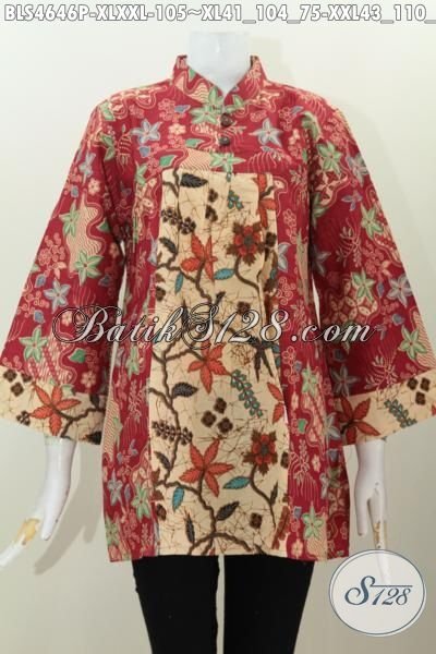 Blus Batik Solo Model Terbaru Dengan Kerah Shanghai Di Lengkapi Kancing, Baju Batik Print Istimewa Untuk Perempuan Dewasa Tampil Modis Dan Anggun [BLS4646P-XL , XXL]