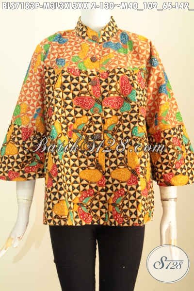 Blus Batik Solo Model Terkini Dengan Kerah Shanghai, Berbahan Halus Kombinasi 2 Warna Motif Printing Hanya 130K, Tampil Mempesona [BLS7183P-XL]