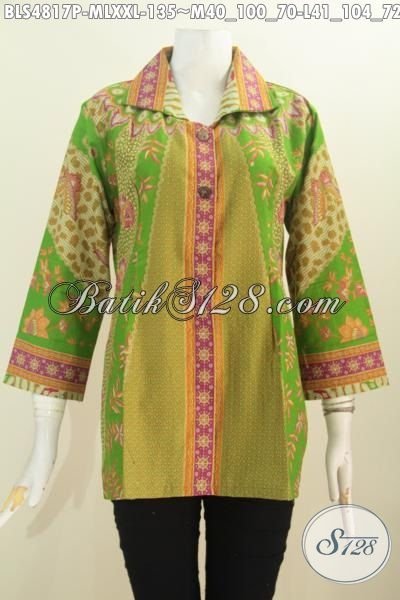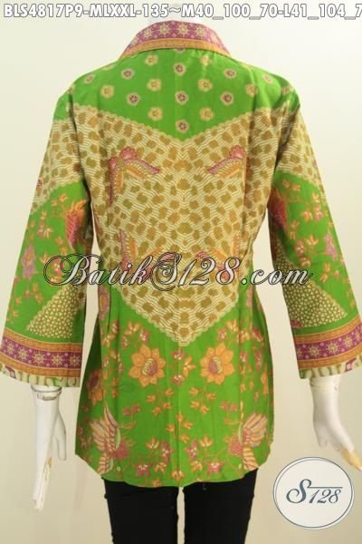 Blus Batik Solo Untuk Wanita Karir Desain Terkini Yang Lebih Mewah, Baju Batik Klasik Motid Sinaran Kwalitas Halus Bahan Adem Model Kerek Kotal Lengan Tujuh Perdelapan [BLS4817P-M , L , XXL]