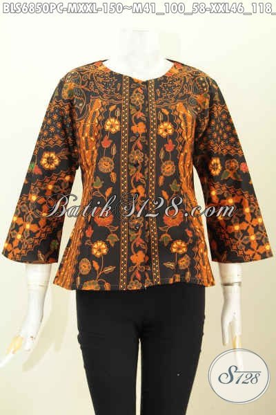 Blus Batik Tabpa Krah Motif Sinaran, Baju Batik Wanita Modis Bahan Halus Proses Printing Untuk Tampil Trendy [BLS6850PC-M , XXL]