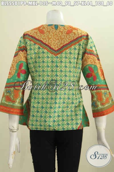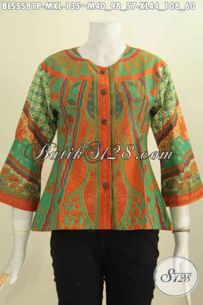 Blus Batik Tanpa Kerah Motif Mewah, Baju Batik Elegan Berkelas Proses Printing Pas Buat Seragam Kerja Kantoran [BLS5581P-M , XL]