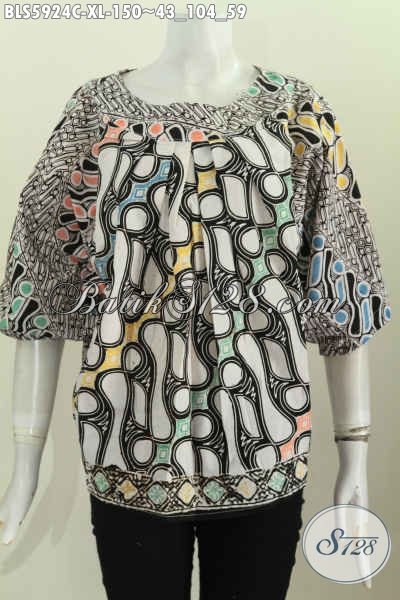 Blus Batik Tanpa Kerah, Pakaian Batik Keren Modis Motif Bagus Proses Cap, Pas Banget Untuk Jalan-Jalan Dan Nge-Mall [BLS5924C-XL]