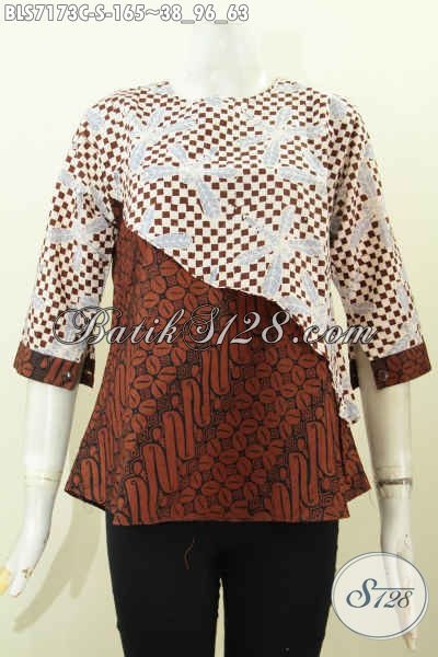 Blus Batik Trendy Dengan Desain Potongan Miring, Baju Batik Warna Kombinasi Dengan Lengan Pakai Kancing Untuk Penampilan Lebih Modis [BLS7173C-S]