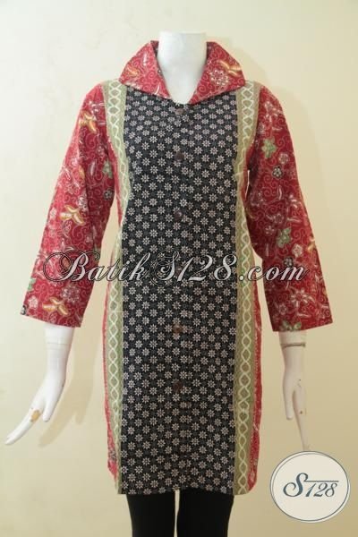 Blus Batik Trendy Motif Terbaru Kombinasi Tiga Warna, Batik Klasik Cap Tulis Desain Modern Yang Membuat Cewek Cantik Dan Stylist [BLS3148CT-L]